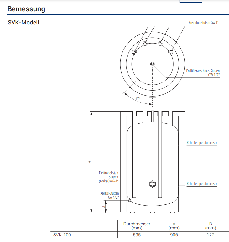- Möglichkeit zur Montage eines Heizstabs Ja