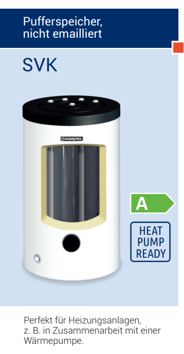 Das SVK Modell kann mit unterschiedlichen Heizquellen verbunden werden. Besonders empfehlenswert ist die Kombination mit einer Wärmepumpe – höhere Lebensdauer und Effizienz.
